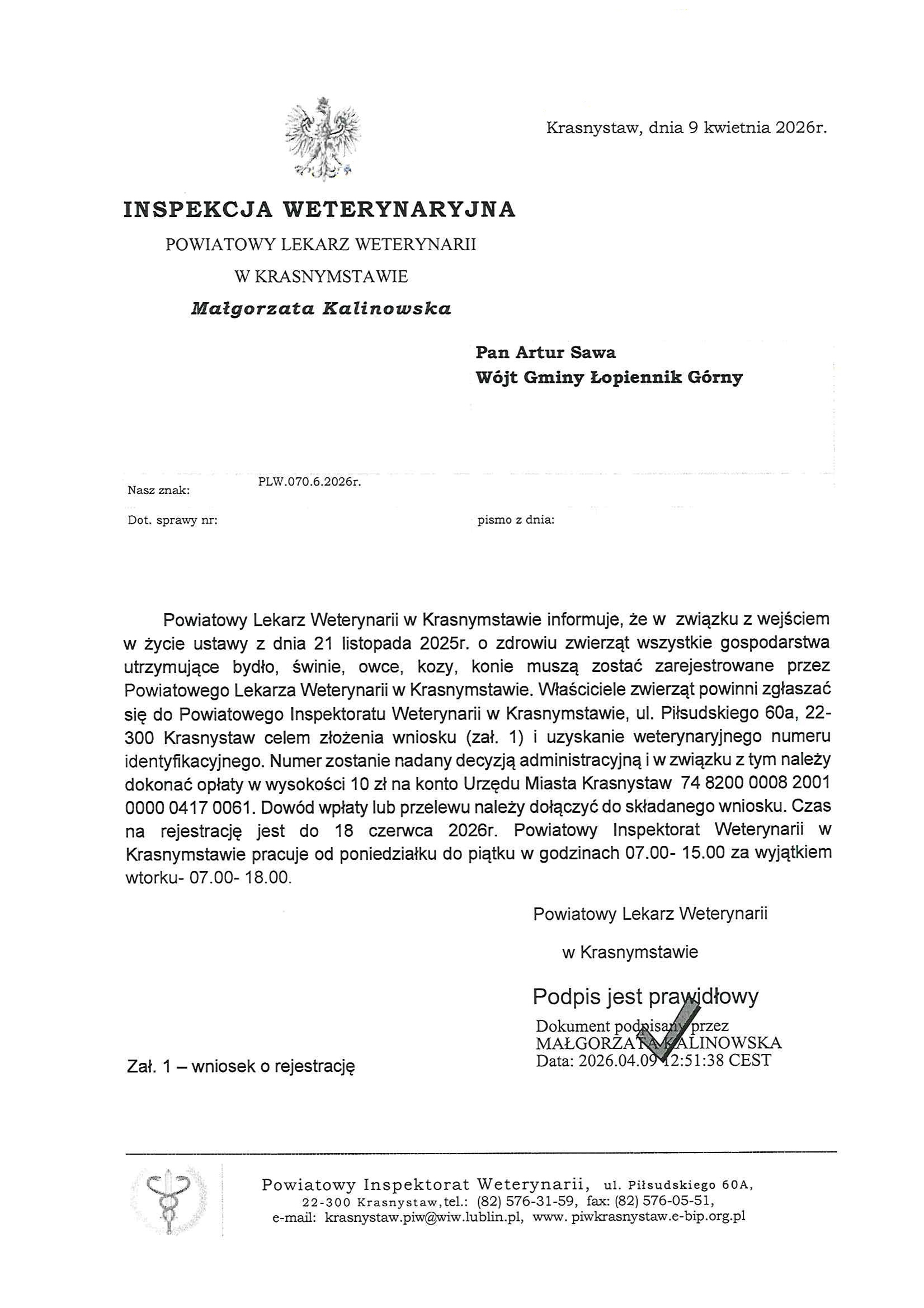 Informacja Powiatowego Lekarza Weterynarii w Krasnymstawie w sprawie : Obowiązku rejestracji zwierząt kopytnych w PIW w Krasnymstawie